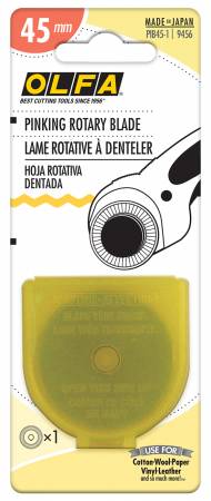 Olfa 45mm Pinking Blade—precision cutting for fabric edges. Ideal for cotton and wool it prevents fraying and adds a decorative touch to sewing projects. Perfect for DIY enthusiasts!