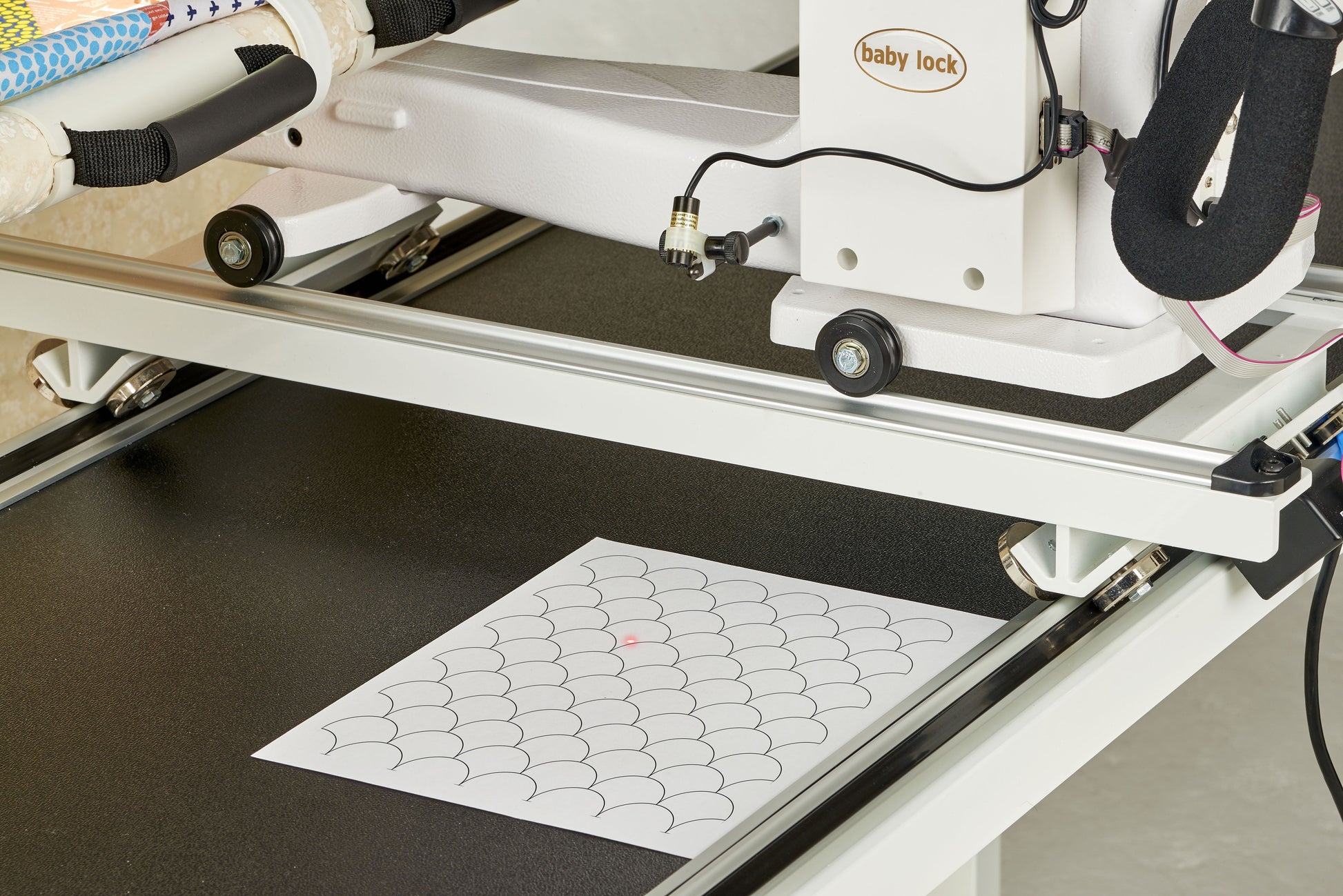 The laser light (for use with pantographs) attaches to a mounting post with a clamp. The mounting post attaches to a threaded hole on the thread-path side of Baby Lock longarm machines.