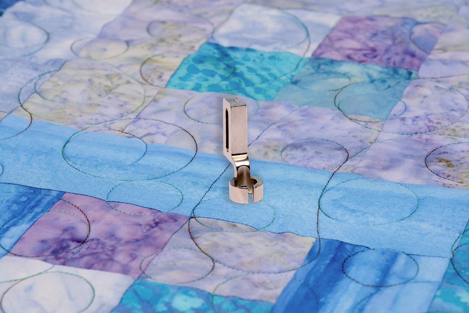 Quilt beautiful designs using rulers and acrylic templates with the Open Toe Ruler Foot. This 1/2” wide foot is designed to give you a 1/4” radius from the needle and the 1/4” height of the foot allows for stability when using high shank and long-arm style rulers. For Group: A, and Models: BLDY2, BLDY, BLCR, BLAR, BLJY, BLTY