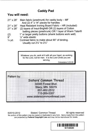 The Caddy Pad Iron Tote is a game-changer for quilters on the go. This innovative tote doubles as a pressing pad, transforming from a compact carrier into a full ironing surface in seconds. No need to hunt for a separate pressing station—your workspace travels with you. The durable construction withstands heat and frequent use, while the smart design keeps your iron secure during transport. Whether you're quilting at home, at a retreat, or teaching a class, this versatile tote eliminates setup hassles and keeps you focused on creating beautiful projects.