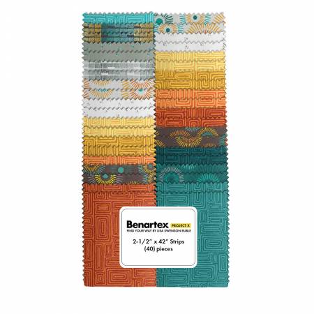 Unleash your creativity with the Find Your Way Strip-pies by Benartex - Contempo - Kanvas. Perfect for quilting enthusiasts and DIY crafters, this vibrant collection features 40 pre-cut fabric strips, each measuring 2-1/2" x 42". The eye-catching assortment of geometric patterns and rich hues, from deep teal to warm mustard, offers endless possibilities for your next project. Whether you're crafting a cozy quilt or a unique home decor piece, these high-quality cotton strips ensure a seamless and stylish finish. Elevate your fabric artistry with the Find Your Way Strip-pies and transform your vision into reality.