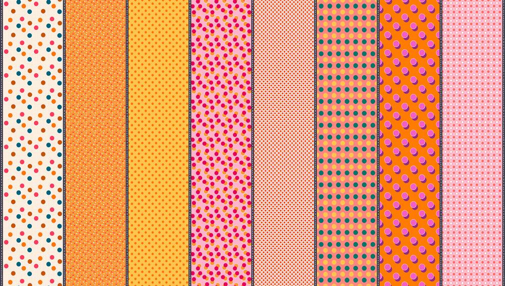 Moda Mixed Bag Lollies fabric—vibrant polka dot designs perfect for quilting and crafts. Add a playful touch to your projects with this colorful high-quality cotton fabric.