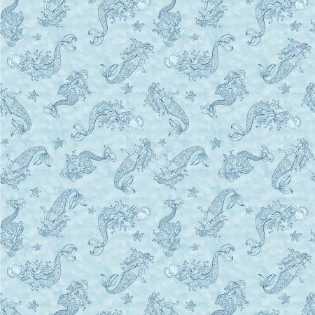 Dive into a world of enchantment with the Sky Sea Sirens fabric by Windham. Perfect for creative souls and DIY enthusiasts, this fabric features a whimsical pattern of mermaids and sea creatures, intricately detailed in soothing shades of blue. Ideal for quilting, crafting, or home décor projects, this fabric brings a touch of the ocean's magic to your creations. Measuring a standard 44 inches in width, it offers ample material for your imaginative designs. Whether you're making a cozy quilt or a unique curtain, let the serene beauty of the sea inspire your next masterpiece. Transform your space with the ethereal charm of Sky Sea Sirens.