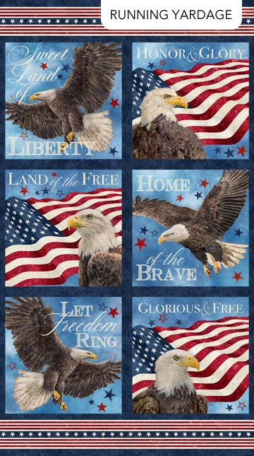Celebrate your patriotic spirit with the Stars and Stripes Stonehenge Blocks Navy Multi Panel by Northcott. This vibrant 24" x 44" panel, crafted from 100% premium cotton, is perfect for quilting enthusiasts and DIY crafters alike. Featuring majestic eagles soaring over iconic American symbols like the flag, this panel embodies themes of liberty, bravery, and freedom. Its rich navy and red hues add a bold touch to any quilt, wall hanging, or home decor project. Ideal for creating unique, heartfelt gifts or adding a touch of Americana to your space, this fabric panel is your canvas for creativity. Let your projects reflect your pride and passion with this stunning design.