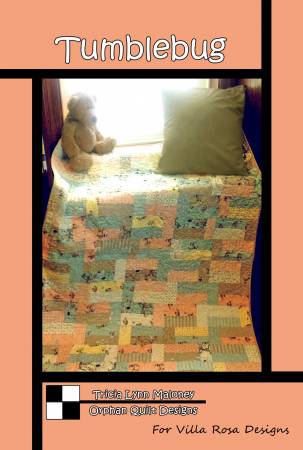 Get that 2-1/2in strip collection together and sew up the tumblebug quilt. Great for kids quilts and beginning sewers. Designed by Tricia Lynn Maloney at Orphan Quilt Designs for Villa Rosa Designs. Finished Size approximately 40in x 42in.
