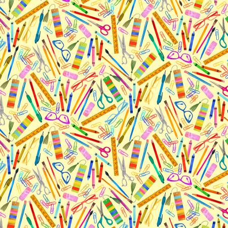 Transform your workspace into a vibrant haven of creativity with the "Books Are Magic || On My Desk || Yellow" fabric by Michael Miller. This delightful fabric features a playful assortment of colorful stationery items like pencils, scissors, and rulers, all set against a cheerful yellow backdrop. Perfect for crafters, quilters, and DIY enthusiasts, this fabric brings a pop of color and whimsy to any project. Whether you're making a quirky tote bag, a unique cushion cover, or a fun wall hanging, this fabric adds a touch of magic and inspiration to your creations. Elevate your crafting game with this enchanting design and let your imagination run wild.