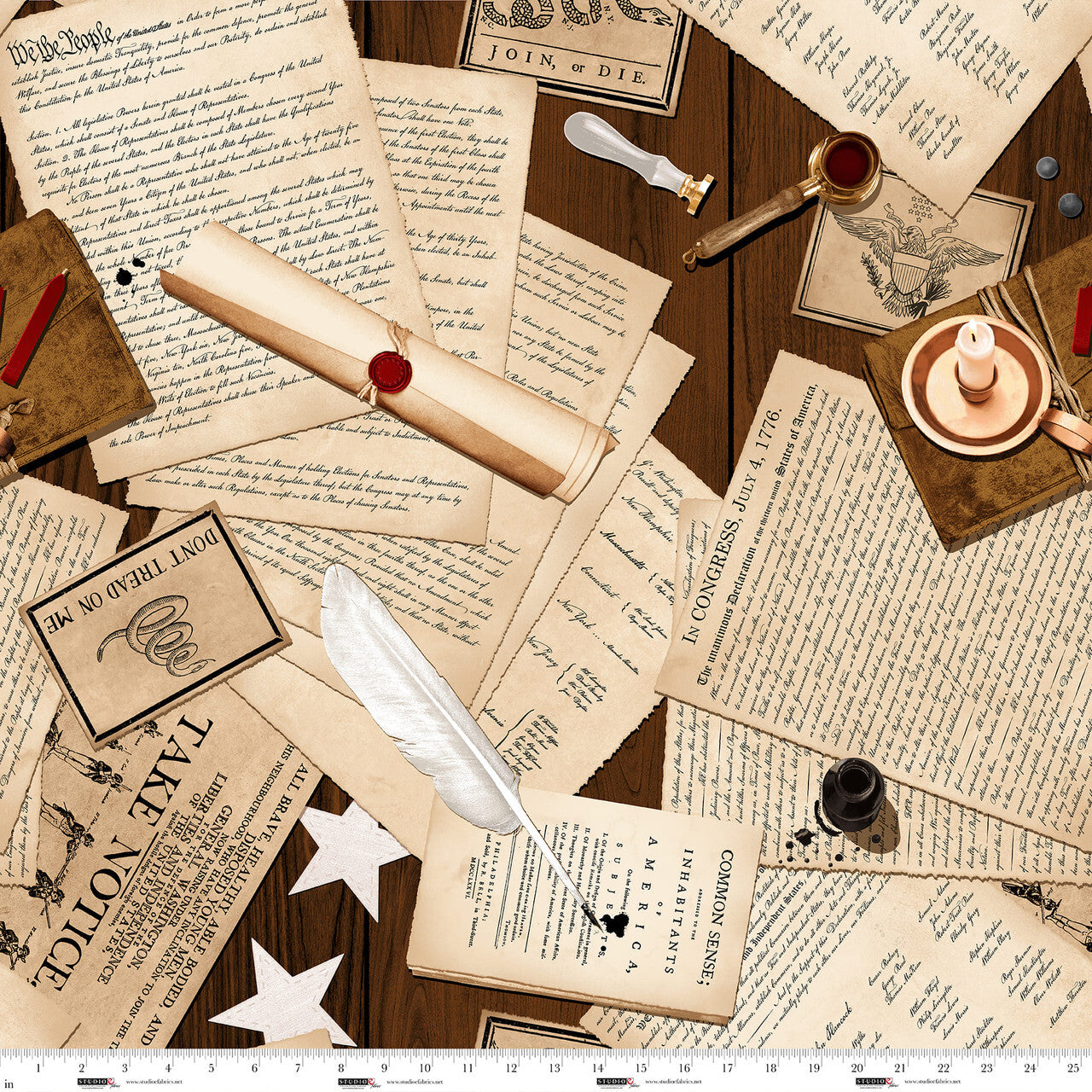 Celebrate your patriotic spirit with the "We the People 108" fabric by Studio E. Perfect for quilting enthusiasts and DIY crafters, this fabric features a timeless design inspired by the founding principles of America. The bold, elegant script of "We the People" is beautifully printed across the fabric, making it an ideal choice for creating quilts, home decor, or unique apparel that resonates with national pride.
