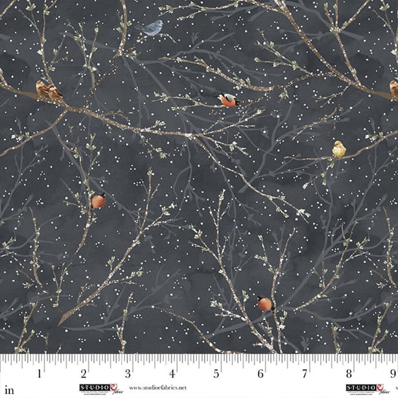 Transform your creative projects with the "Hazy Shade of Winter Midnight Branches" fabric by Studio E. This exquisite fabric captures the serene beauty of winter nights with its intricate pattern of dark, intertwining branches set against a deep, mysterious backdrop. Perfect for quilting, home décor, or fashion, this fabric adds a touch of elegance and depth to any project. Made with high-quality materials, it ensures durability and a soft touch, making it ideal for both novice and experienced crafters. Let your imagination run wild and bring the tranquil charm of winter into your creations with this stunning fabric.