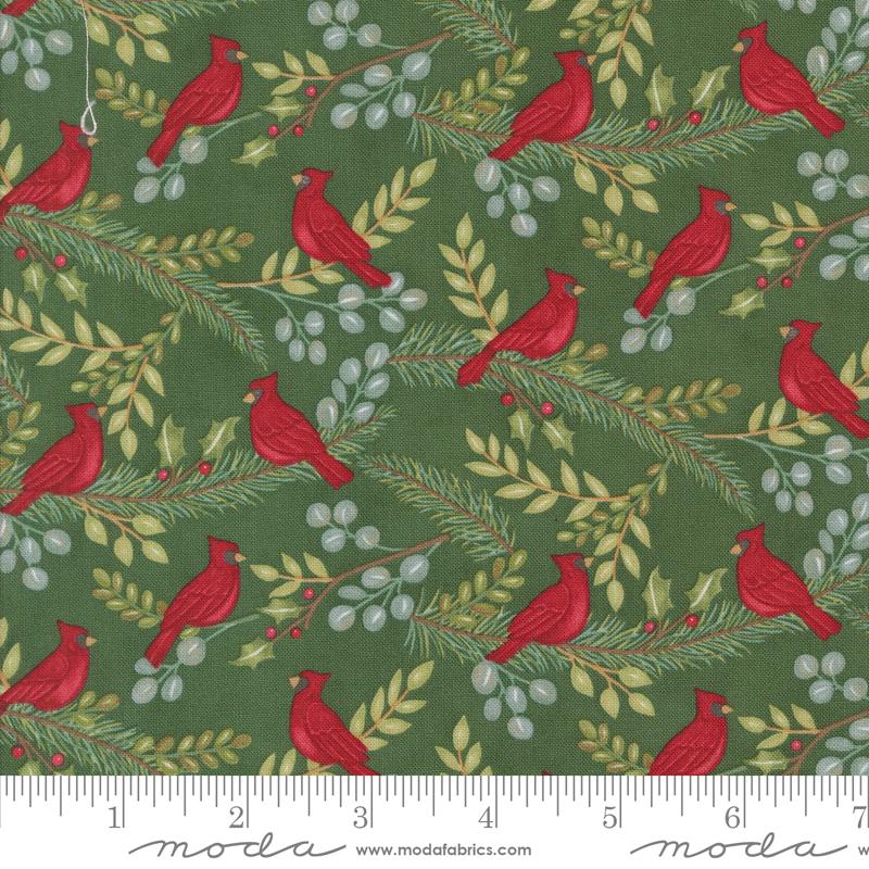 Embrace the warmth of the season with Moda's Winter Friends Spruce fabric. This enchanting fabric features vibrant red cardinals perched among lush green spruce branches, evoking the serene beauty of a winter forest. Perfect for quilting enthusiasts and DIY crafters, this fabric brings a touch of nature's elegance to your projects. Whether you're creating a cozy quilt, festive table runner, or decorative pillow, the rich colors and intricate design promise to add a festive charm to any creation. Made with Moda's renowned quality, this fabric ensures durability and a soft touch, making it a delightful choice for your winter-themed crafts. Let your creativity soar with Winter Friends Spruce!
