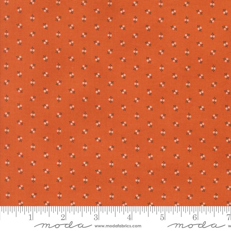 Embrace the warmth of autumn with Moda's Pumpkin Spice Gather Trumpet Vine fabric. This exquisite fabric showcases a rich, pumpkin-orange hue adorned with delicate, small floral patterns, making it a quintessential choice for fall-inspired quilts and home décor projects. Crafted from durable yet soft material, it promises both longevity and comfort, perfect for cozying up your space. Whether you're crafting a quilt, creating throw pillows, or designing table runners, this fabric adds a touch of autumnal elegance to any creation. Transform your home into a seasonal haven with this charming fabric, ideal for crafters who cherish the cozy vibes of fall.