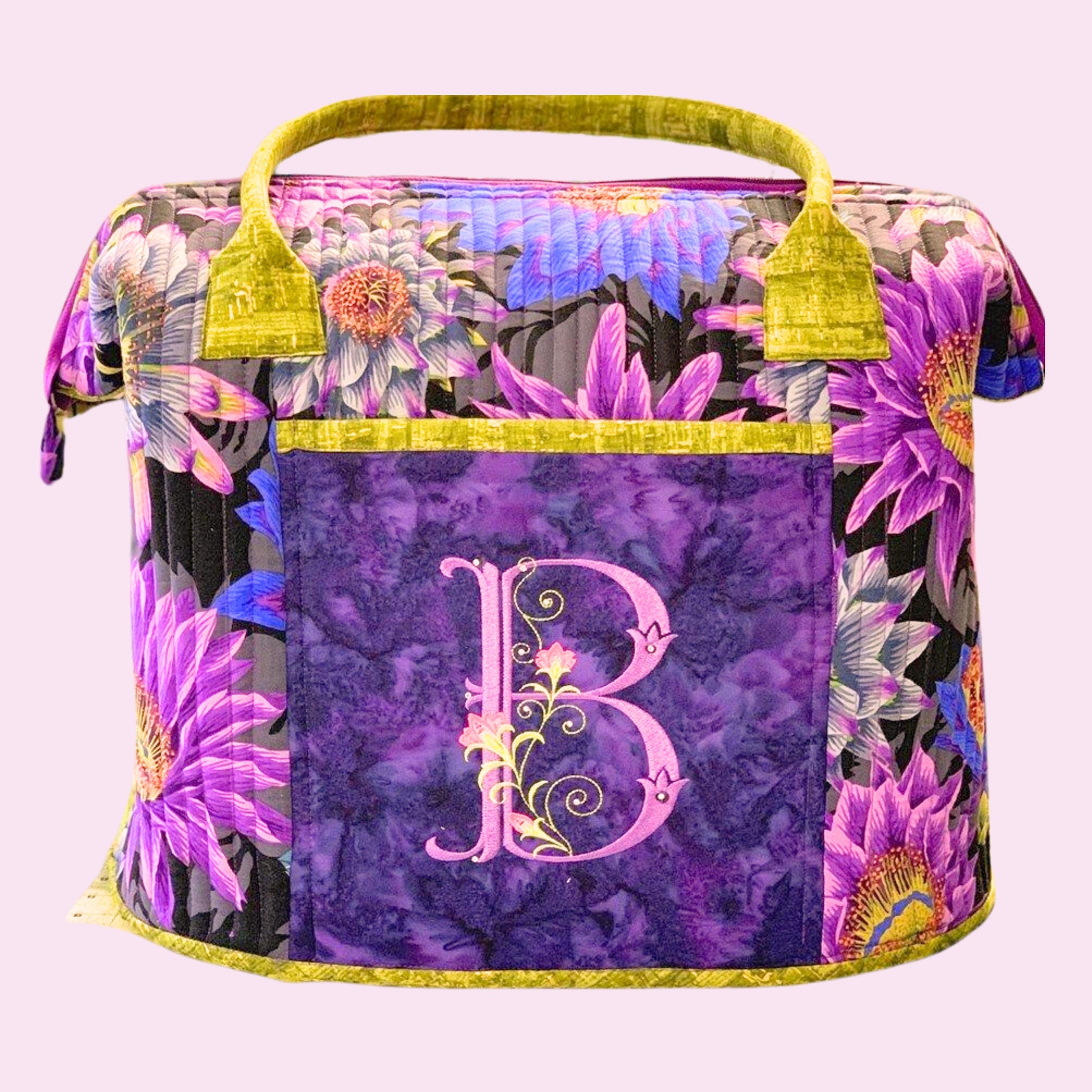 Join Marietta to make this generously-sized, sturdy travel bag! The special stays that give this bag its signature shape open wide to allow unhindered access to everything inside, and a zipper keeps everything secure. It features handy pockets inside and out. Finished size is 18" wide, 12" deep, and 14" tall. Intermediate level.